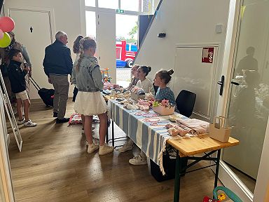 Sterke schouders sjouwen met stoere krachten de kerk leeg. De penningmeester kijkt glimlachend toe: elke vrijwilliger levert euro's op.